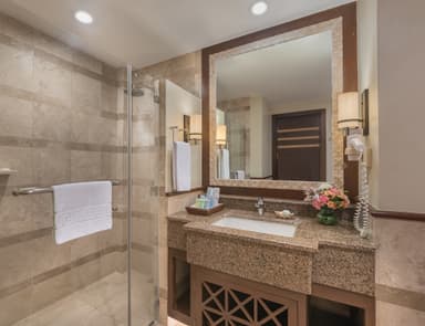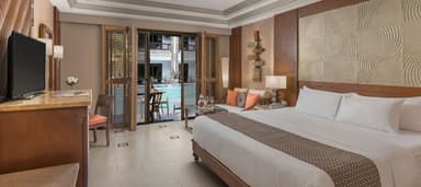 프리미어 풀억세스룸은 약 45제곱미터 규모로, 킹 베드 1개 또는 퀸 베드 1개와 싱글 베드 1개가 마련되어 있습니다. 1층에 위치해 객실 전용 테라스에서 바로 수영장으로 연결되며, 야외 다이닝 세트와 선베드가 구비되어 있어 여유로운 휴식을 즐기실 수 있습니다. 모던하고 고급스러운 인테리어, 푹신한 소파, 넉넉한 수납 공간을 갖추고 있으며, 샤워 시설과 욕조가 분리된 욕실로 더욱 쾌적한 시간을 보낼 수 있습니다.