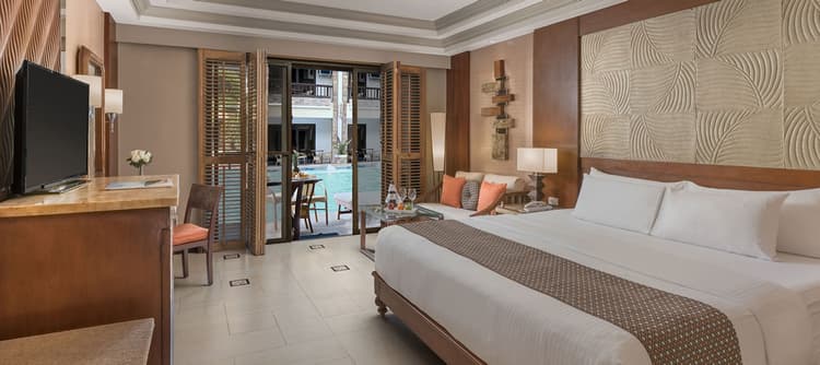 디럭스 객실은 약 40제곱미터 규모로, 킹 베드 1개 또는 트윈 베드가 마련되어 있습니다. 전용 발코니에서 정원이나 리조트 내부 전망을 감상할 수 있으며, 깔끔하고 모던한 인테리어와 아늑한 소파, 넉넉한 수납 공간이 있어 편안하게 머무실 수 있습니다. 샤워 시설이 완비된 욕실과 기본 어메니티도 제공되어 쾌적한 휴식을 선사합니다.